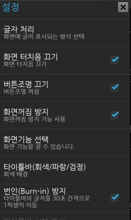 - 자동 화면 꺼짐 (초기 설정은 OFF)