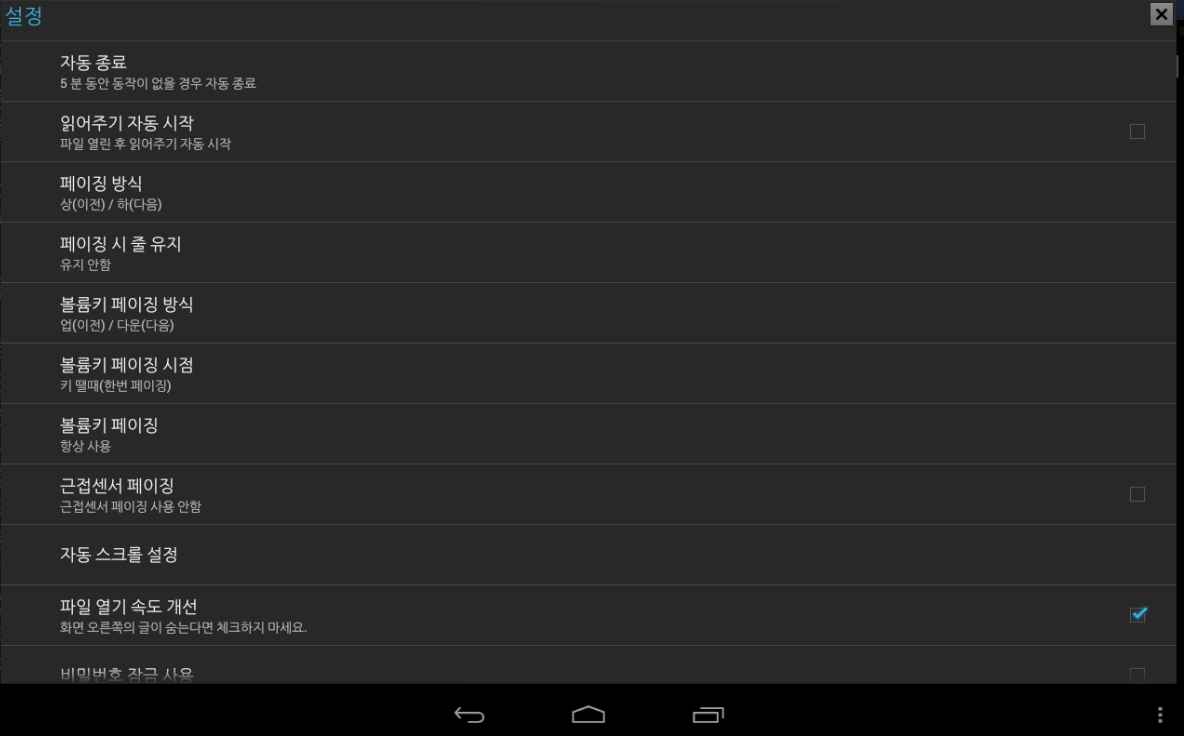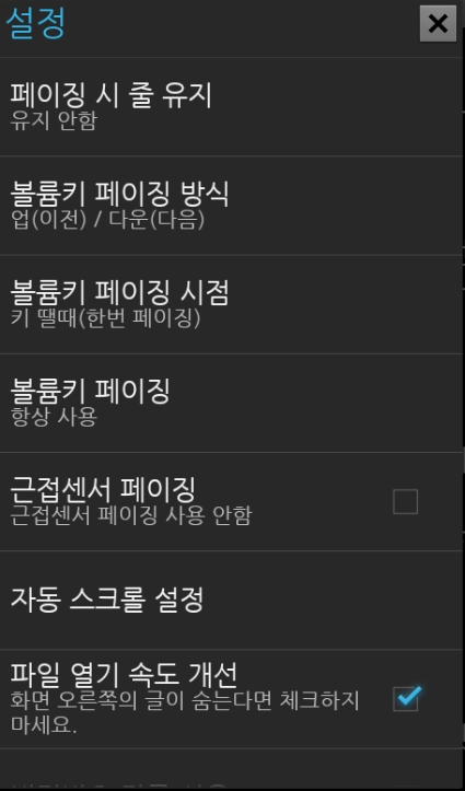볼륨 변경으로 다음 페이지 전환 지원 (인앱 구매 필요, 소리 크기도 같이 변경됩니다. 주의하세요. 설정에서 ON 변경 필요)